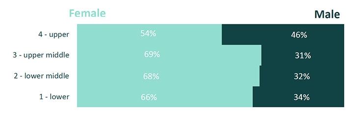 For gender pay gap reporting, we’re also required to divide our paid workers into four quartiles by hourly rate and to show proportion of men and women in each quartile at the snapshot date.